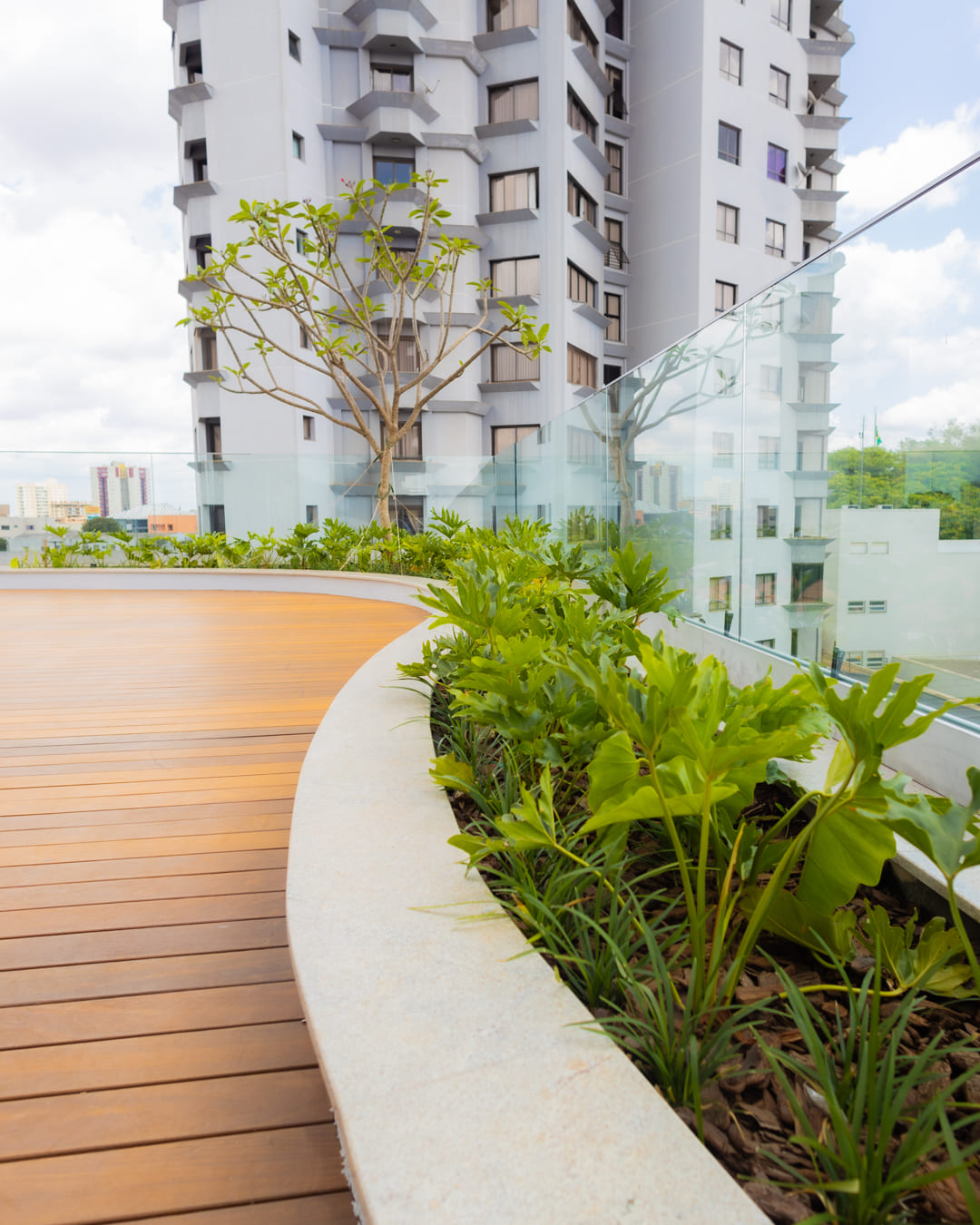 O paisagismo no Edifício Soleil Residence foi desenvolvido para valorizar os espaços com elegância e equilíbrio, integrando o verde de forma sutil à arquitetura. Cada detalhe foi pensado para criar ambientes acolhedores, onde a presença da natureza contribui para bem-estar, estética e qualidade de vida, reforçando a harmonia entre o espaço urbano e a beleza natural.
